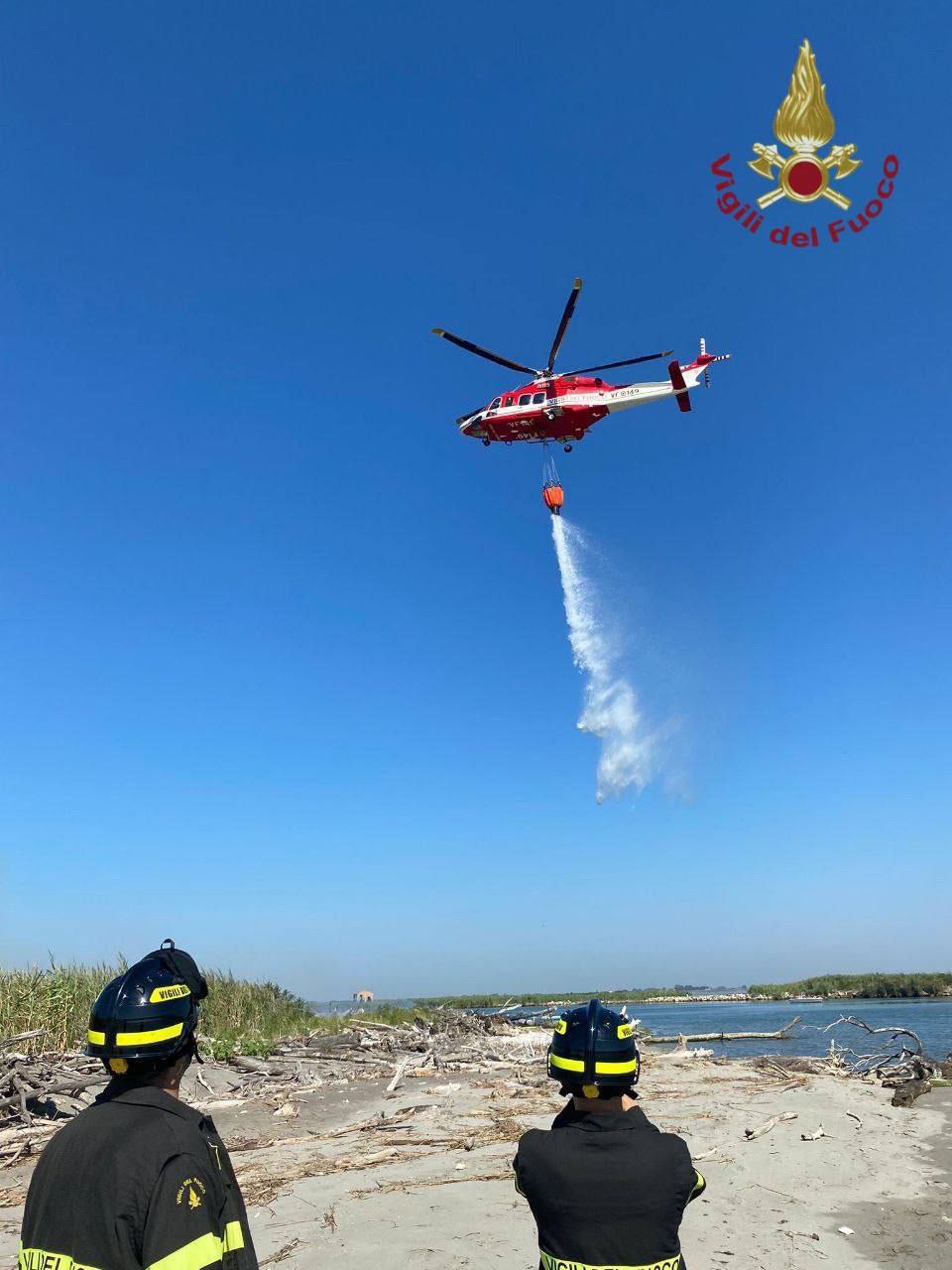 L’allarme è scattato intorno alle ore 9.00. Oltre alla squadra di terra, sul posto è stato inviato anche l’elicottero Drago 149 del reparto volo di Venezia, che ha supportato le operazioni dall’alto per circoscrivere rapidamente il fronte delle fiamme.