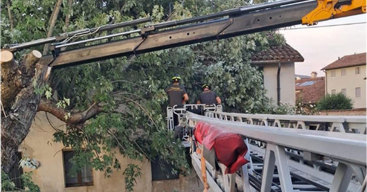 L’allarme è scattato attorno alle 15.45 e sul posto sono arrivate le squadre dei vigili del fuoco provenienti sia dal distaccamento di Bassano del Grappa che dalla centrale di Vicenza. In tutto sono stati impegnati nove operatori con diversi mezzi, tra cui un’autoscala e un camion gru, necessari per sollevare il pesante tronco e i rami che si erano adagiati sul tetto.