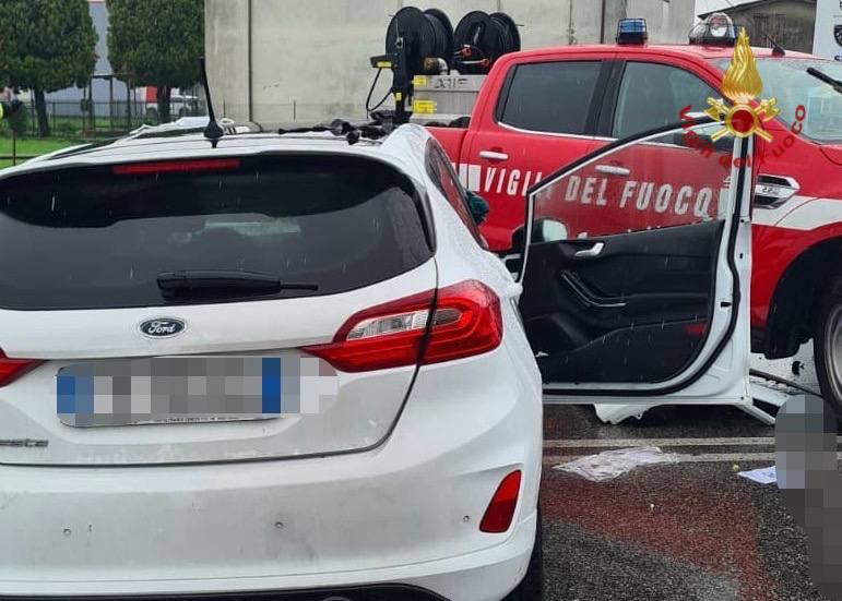 Una squadra dei Vigili del Fuoco del distaccamento locale è intervenuta prontamente per liberare dalle lamiere accartocciate un uomo alla guida di una vettura e suo figlio, affetto da disabilità, che sono stati affidati alle cure del personale medico e trasportati in ospedale a Padova.