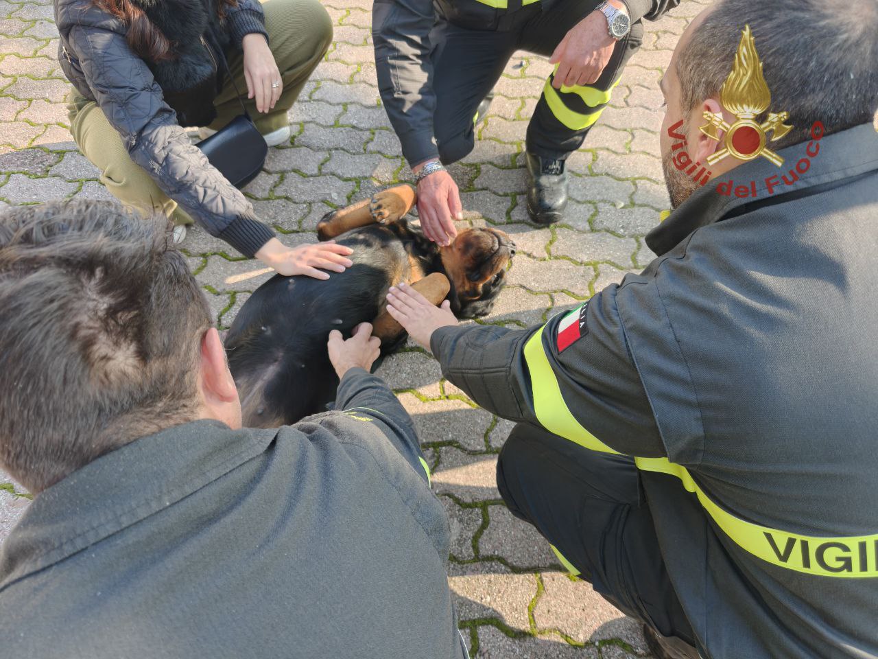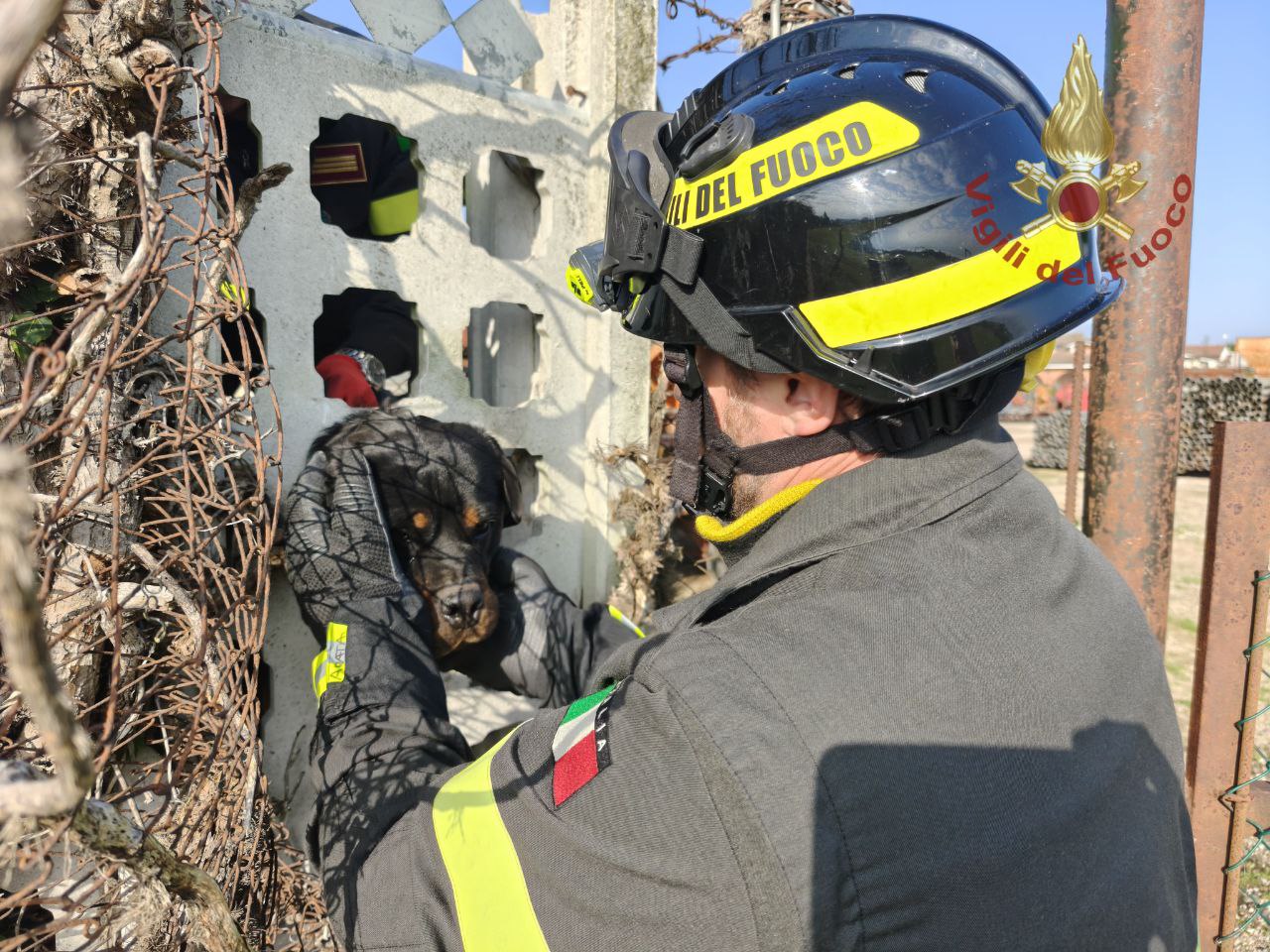 Questa mattina, poco dopo le 10, a Isola della Scala una rottweiler di nome Diana è rimasta bloccata tra le sbarre di una recinzione in cemento, senza riuscire a liberarsi.