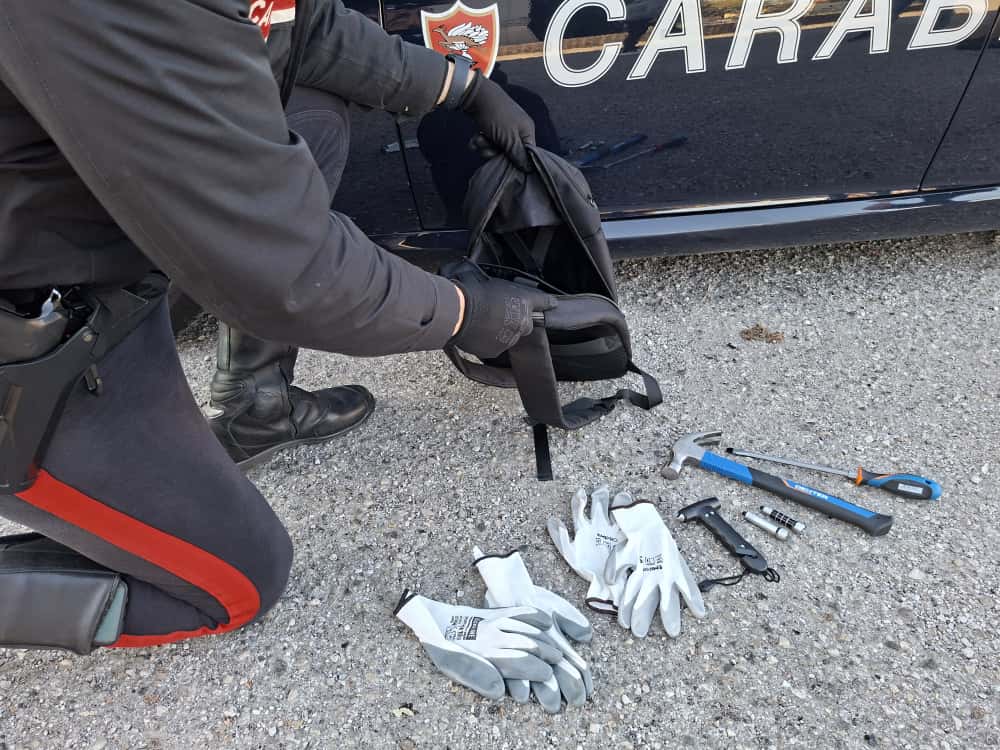 Durante il controllo, i militari hanno eseguito una perquisizione personale trovando in loro possesso arnesi da scasso: un martello, un grosso cacciavite, un frangivetro, due paia di guanti e due torce, tutto materiale comunemente utilizzato per compiere furti in abitazioni o esercizi commerciali.