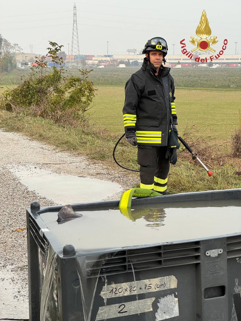 La squadra dei Vigili del fuoco della centrale di Padova è arrivata rapidamente sul posto, intervenendo per raffreddare la bombola surriscaldata e trasferirla in una vasca colma d’acqua, procedura necessaria per metterla in completa sicurezza. Una volta bonificata l’area e stabilizzata la situazione, è stata chiamata una ditta specializzata nel trattamento di bombole danneggiate, che ha provveduto al recupero del contenitore.