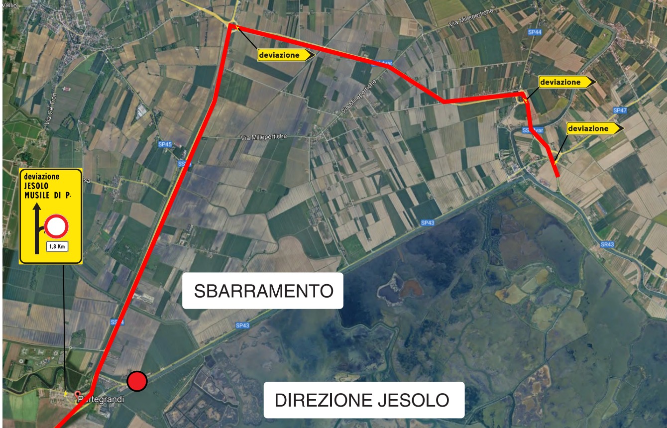 La Sp43 “Portegrandi – Jesolo” resterà chiusa al traffico per due giorni, da venerdì 9 a sabato 10 gennaio, tra Quarto d’Altino e Musile di Piave, a causa dell’incidente avvenuto mercoledì 7 gennaio al km 5 della strada.