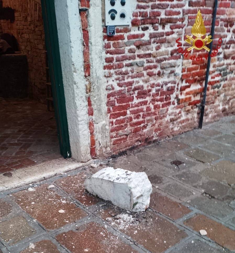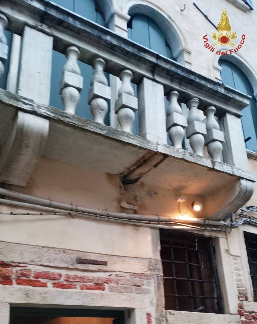 Alle 9:00, i Vigili del fuoco con l’autopompa lagunare sono intervenuti prontamente per mettere in sicurezza la zona e tutelare la pubblica incolumità. Sul posto erano presenti anche la Polizia Locale e una ditta specializzata, incaricata di effettuare il puntellamento del terrazzino danneggiato.