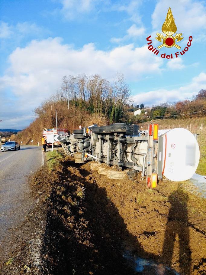 Momenti di apprensione questo pomeriggio ad Asolo, quando un camion cisterna carico di latte è finito in un fosso lungo una delle arterie principali della zona. L’incidente è avvenuto intorno alle 15:30ì, quando alla Sala Operativa dei Vigili del Fuoco di Treviso è giunta la richiesta di soccorso.