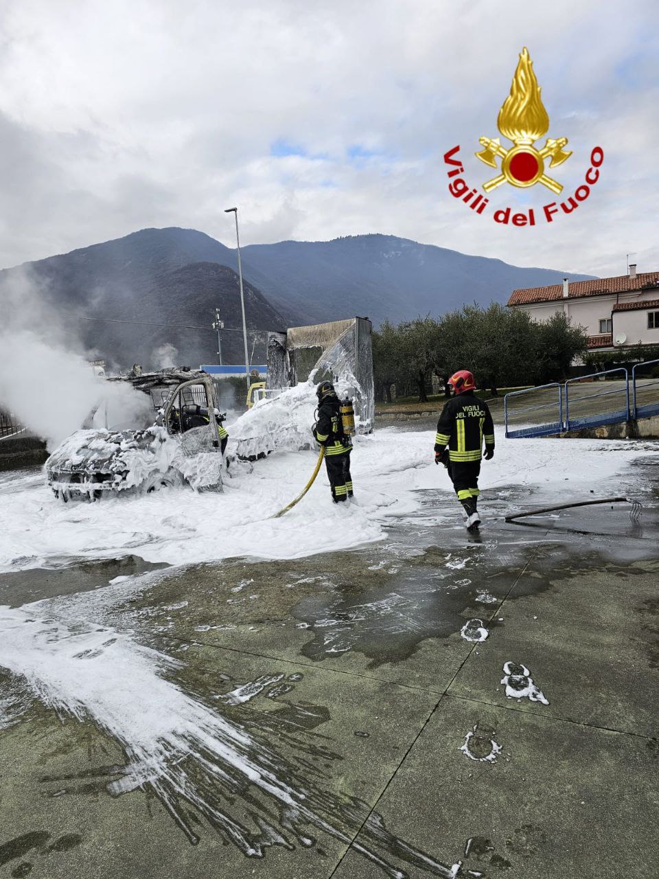 Paura questa mattina, 12 febbraio 2026, poco prima delle 13, quando un furgone commerciale ha preso fuoco all’interno di un’area privata di Via San Bortolo. Fortunatamente non si registrano feriti.