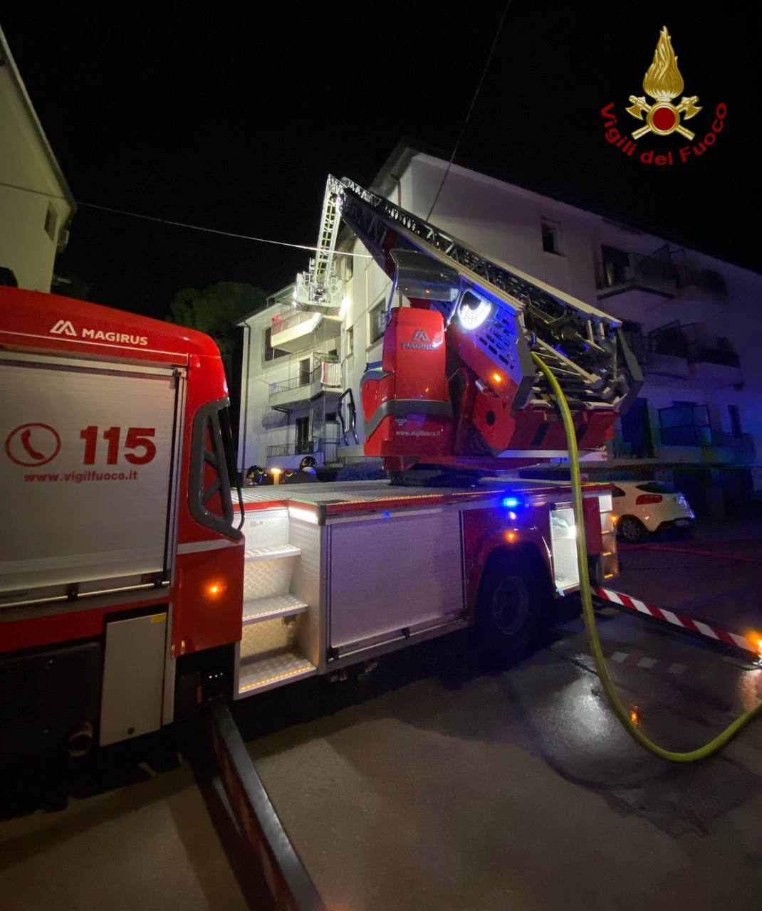 Al momento dell’arrivo dei soccorsi, due persone – un anziano e la sua badante erano riusciti a rifugiarsi su un terrazzino, da dove sono stati rapidamente evacuati grazie all’intervento dell’autoscala dei Vigili del Fuoco. L’incendio è stato domato con prontezza, e i locali interessati sono stati messi in sicurezza.