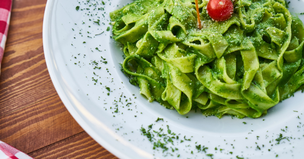Ingredienti: 500 g di spinaci freschi; 300 g di piselli freschi; 300 g di fagiolini; 40 g di mandorle pelate; olio extravergine di oliva; aglio; sale; pepe Preparazione: Sciacquate gli spinaci e sbollentateli in acqua salata per un minuto. Scolateli, fateli intiepidire e strizzateli, conservandone l’acqua di cottura. Trasferiteli nel boccale del mixer, unite le mandorle insieme all’olio a filo frullando, fino a ottenere un pesto cremoso. Nel frattempo, in una padella antiaderente fate insaporire uno spicchio d’aglio e unite i piselli e i fagiolini tagliati a pezzetti in precedenza. Fateli saltare per qualche minuto, dovranno risultare cotti ma ancora croccanti. Cucinate la pasta nell’acqua in cui erano stati sbollentati gli spinaci. Quando è al dente scolatela, trasferitela nella padella delle verdure e fate saltare per insaporire il tutto. Fuori dal fuoco aggiungete il pesto di spinaci e mescolate bene.Edizione