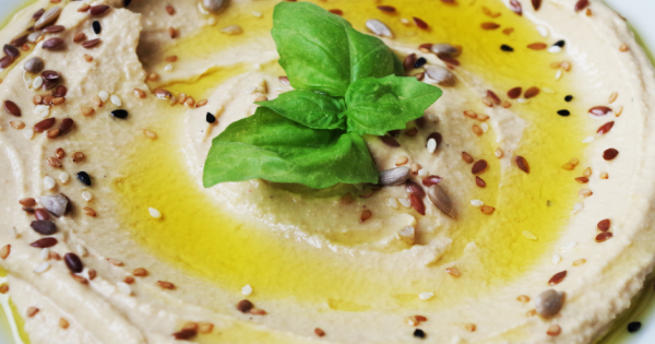 Un piatto mediorientale realizzato con una crema a base di ceci, tahina, paprika e succo di limone. Per un veloce antipasto da condividere con gli amici