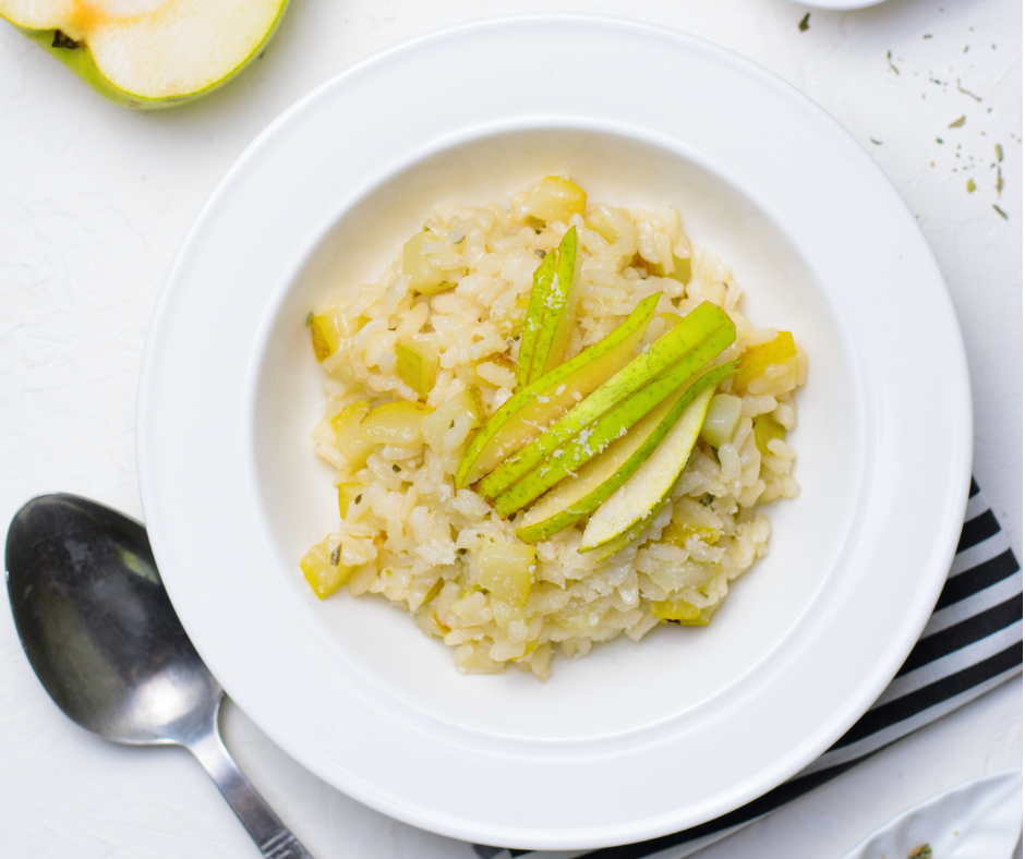 Un primo piatto sfizioso e originale che unisce la dolcezza della pera al gusto intenso del taleggio. Un connubio perfetto tra sapori contrastanti che si fondono in un piatto cremoso e irresistibile. Ingredienti: 320 g di riso; 2 pere mature; 150 g di taleggio, tagliato a cubetti; 1 cipolla; mezzo litro di brodo vegetale; 80 ml di vino bianco secco; 50 g di burro; Olio extravergine d'oliva; Sale e pepe q.b.; Noci tritate o foglie di timo fresco per guarnire Preparazione: Pulire le pere, sbucciale e tagliale a dadini piccoli. Mettile da parte. Scaldare il brodo in un pentolino e tenerlo caldo a fuoco basso. In una padella ampia, sciogliere metà del burro insieme a un po' di olio extravergine d'oliva a fuoco medio. Aggiungere la cipolla tritata e soffriggere finché diventa trasparente. Aggiungere il riso nella padella e tostarlo per un paio di minuti, mescolando costantemente fino a quando i chicchi diventano leggermente trasparenti sui bordi. Sfumare con il vino bianco e lasciare evaporare l'alcol. Aggiungere il brodo caldo, mescolando di tanto in tanto. Continuare fino a quando il riso diventa cremoso e al dente. Nel frattempo, in una padella a parte, saltare i dadini di pera in una noce di burro fino a quando diventano leggermente dorati. Quando il risotto è quasi pronto, aggiungere i dadini di pera il taleggio a cubetti. Mescolare fino a quando il formaggio si è fuso e il risotto ha raggiunto una consistenza cremosa. Guarnire con noci tritate o foglie di timo fresco