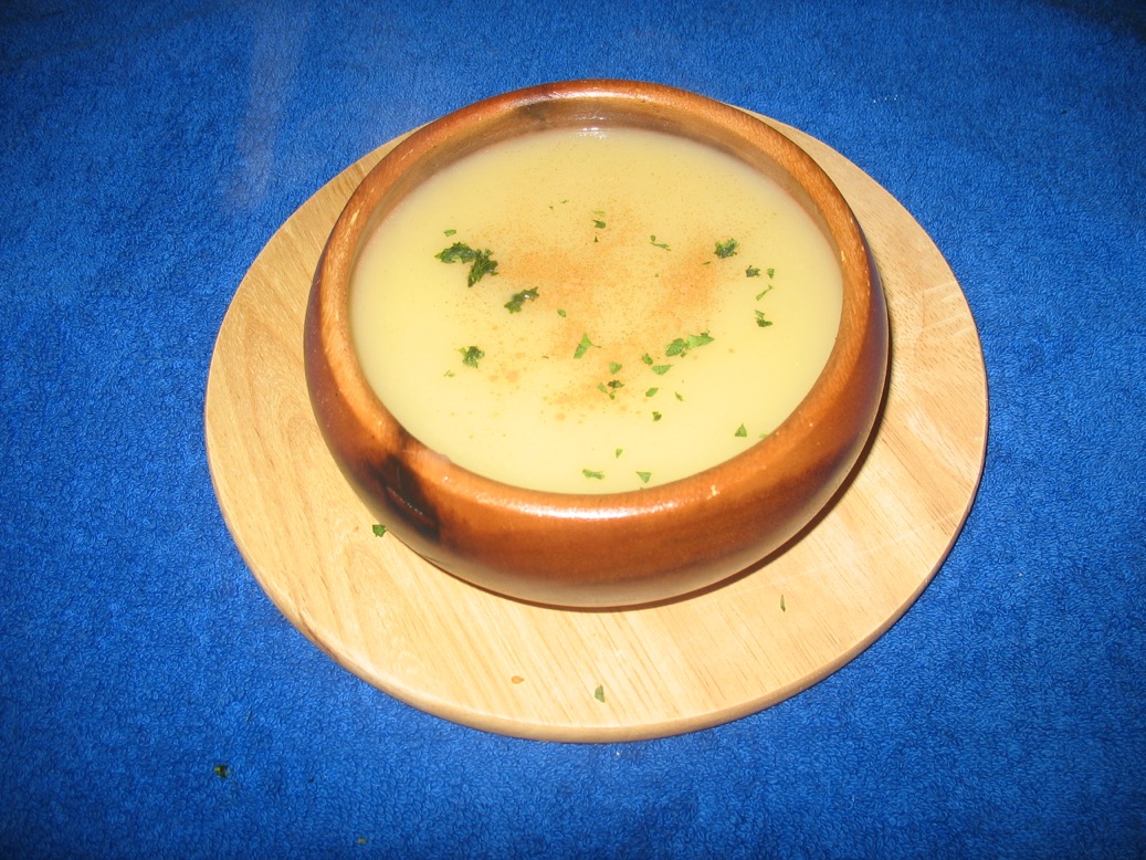 Ingredienti: -4 cipolle medie - 2 patate - 1 L d’acqua - 2 C di olio - 1 pizzico di prezzemolo tritato. Preparazione: ungere una teglia d’olio, tagliare le cipolle a fette sottili e farle dorare, unire le patate tagliate a dadini, saltare il tutto assieme per 5 minuti. Aggiungere l’acqua, il sale e far cuocere per circa 30 minuti. A fiamma spenta frullare il tutto (con il frullatore a immersione), condire con l’olio crudo e il prezzemolo tritato. Deve risultare una crema vellutata. Servire così o con l’aggiunta di crostini.