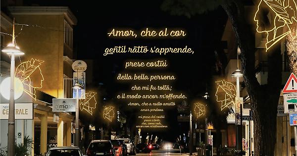 “Amor, che a nullo amato amar perdona”. È questo uno dei versi di Dante Alighieri che, a partire dalle prossime settimane, campeggeranno lungo la via del Lido di Jesolo dedicata al Sommo Poeta. L’amministrazione comunale sta definendo gli ultimi dettagli per l’installazione di una serie di luminarie che valorizzeranno questo tratto della via principale del lido di Jesolo attraverso le rime del padre della lingua italiana con versi tratti da “La Divina Commedia” e uno da “Vita Nova”. Il progetto è stato sviluppato dall’assessorato al Turismo e poi proposto al comitato di zona, che ha subito accolto e sostenuto l’iniziativa raccogliendo la partecipazione di residenti e operatori commerciali. La prima luminaria sarà collocata all’altezza dell’incrocio con via Ungaretti mentre l’ultima anticiperà di qualche metro l’incrocio con via Dalmazia.