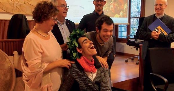 Non gli bastava la laurea a pieni voti con una tesi su Papa Francesco. Alessandro Bottin ha scelto di andare oltre e dare alle stampe un libro in cui racconta sé stesso e la sua fede. “Eccomi” è il titolo del volume (edizioni Tracciati). Alessandro, figlio 25enne del consigliere Antonio Bottin, vive a Correzzola (Pd) e frequenta regolarmente la parrocchia S. Egidio di Pegolotte, ora Unità Pastorale di Cona. Ha frequentato la scuola dell’infanzia a Cavarzere e le scuole primaria e secondaria di I grado a Pegolotte. Si è diplomato all’Istituto Tecnico Commerciale “De Nicola” di Piove di Sacco e ha completato il percorso con la Laurea in Scienze Religiose all’Issr di Padova nel 2018. Il giovane scrittore è affetto da Paralisi Cerebrale Infantile, che gli impedisce di parlare e di camminare poiché comporta una paralisi di tutti e 4 gli arti, accompagnata da contrazioni muscolari involontarie, e interessa anche l’articolazione del linguaggio, a causa di un’asfissia da parto. Alessandro comunica e scrive fissando con gli occhi le lettere su una tavoletta e con l’aiuto di una persona che legge ad alta voce quanto composto. “In questa sua biografia – si legge nella quarta di copertina - Alessandro racconta in prima persona la sua storia di bambino “speciale”, che i genitori hanno cresciuto cercando di fargli vivere le esperienze di tutti gli altri bambini. Alessandro oggi comunica con gli occhi, ma ha una marcia in più, che gli è data dalla sua voglia di vivere e soprattutto dalla sua Fede: il suo sogno è diventare sacerdote, non sa se potrà realizzarlo, intanto ha completato il percorso di studi della Laurea in Scienze Religiose. Un traguardo che dimostra come, con obiettivi e costanza, nulla o quasi è precluso”. Gaia Ferrarese