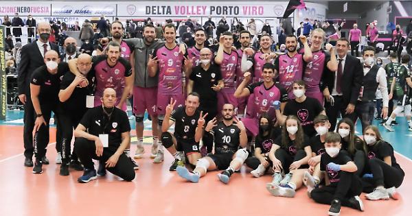 La felicità di giocatori e staff del Delta Volley Porto Viro