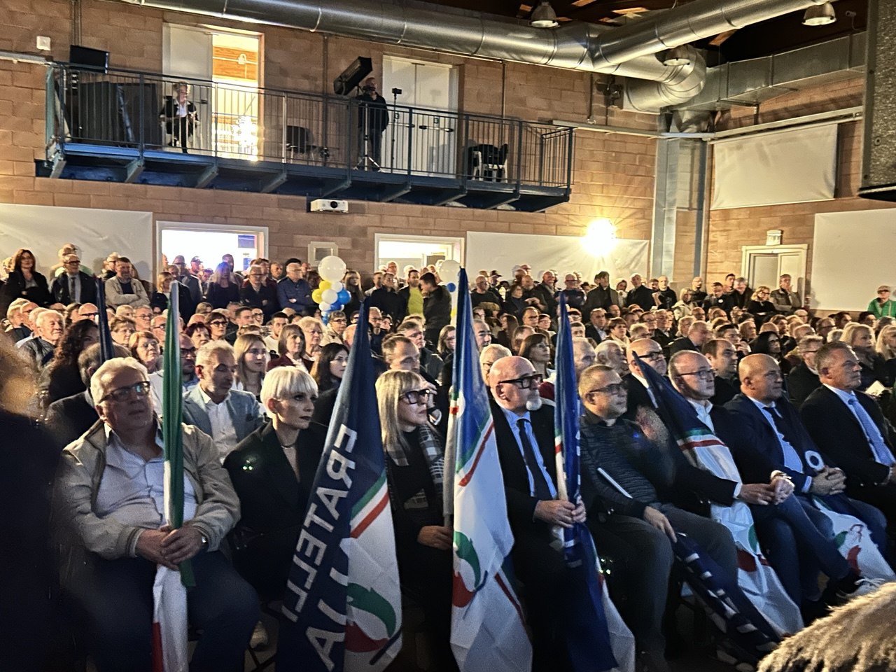Sul palco, accanto a Mantovan, il senatore e coordinatore regionale di Fratelli d’Italia, Luca De Carlo, che ha voluto sottolineare la forza della squadra e la continuità del lavoro svolto: