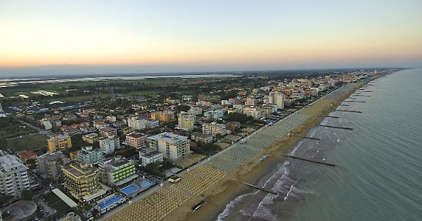 Una suggestiva veduta dall'alto del lungomare di Jesolo