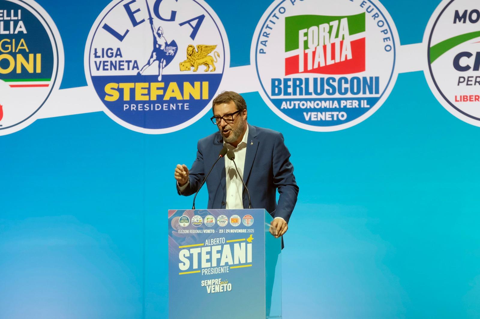 Matteo Salvini (Lega): «Lo dico ai candidati: questi sono i giorni più importanti, da qui a lunedì pomeriggio. Perché l’obiettivo — e lo dico con sobrietà, umiltà e scaramanzia — non è vincere, ma stravincere in Veneto. Oggi è una giornata storica per tutto il centrodestra e per tutto il Veneto, in particolare per la Lega. Dopo trent’anni di battaglie, di impegno, di gazebo, il referendum e la firma dell’intesa per l’autonomia rappresentano un passaggio di libertà, modernità e progresso. Grazie ai due milioni di cittadini che ci hanno permesso di arrivare fino a qui. Stamattina ero a Cortina: nessuno credeva che dopo settant’anni saremmo riusciti a riportare le Olimpiadi in Veneto e in Lombardia. Ci siamo riusciti, e lo abbiamo fatto giocando in trasferta, quando la Lega era al governo con i professionisti del “no”, i Cinque Stelle. Grazie alle Olimpiadi il mondo guarderà alle Dolomiti. E oggi, con il sindaco di Belluno, abbiamo visto la nuova stazione in fase di ristrutturazione e le varianti in Cadore. Mentre la sinistra chiacchiera, noi abbiamo venti miliardi di euro di cantieri aperti in tutto il Veneto: strade, autostrade, ferrovie, dal porto di Venezia all’alta velocità, fino alle case popolari».