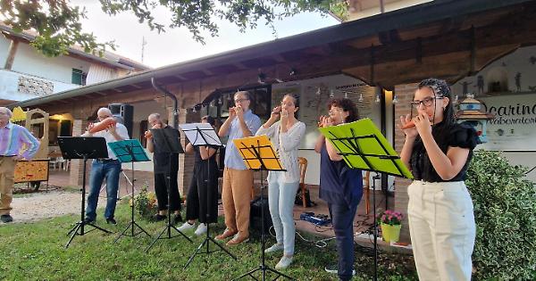 Il settimino ocarinistico composto dalla famiglia Fecchio, Daniele Tessarin e Filippo Bergo