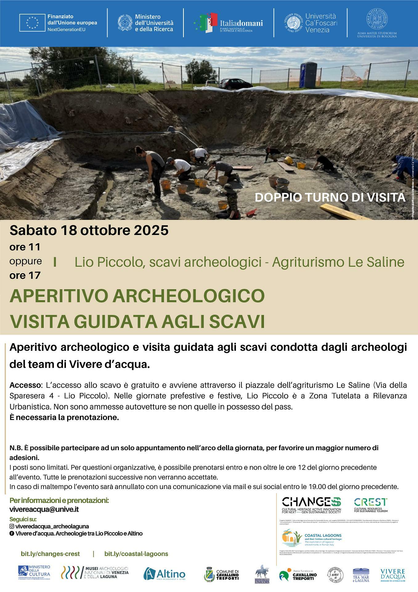 Le visite si terranno in due turni, alle ore 11.00 e alle 17.00, con partenza dall'Agriturismo Le Saline (Via della Sparesera 4, Lio Piccolo). Durante l'evento, i ricercatori dell'Università Ca' Foscari presenteranno i risultati più recenti delle indagini e guideranno i partecipanti alla scoperta della storia nascosta di questa area.
