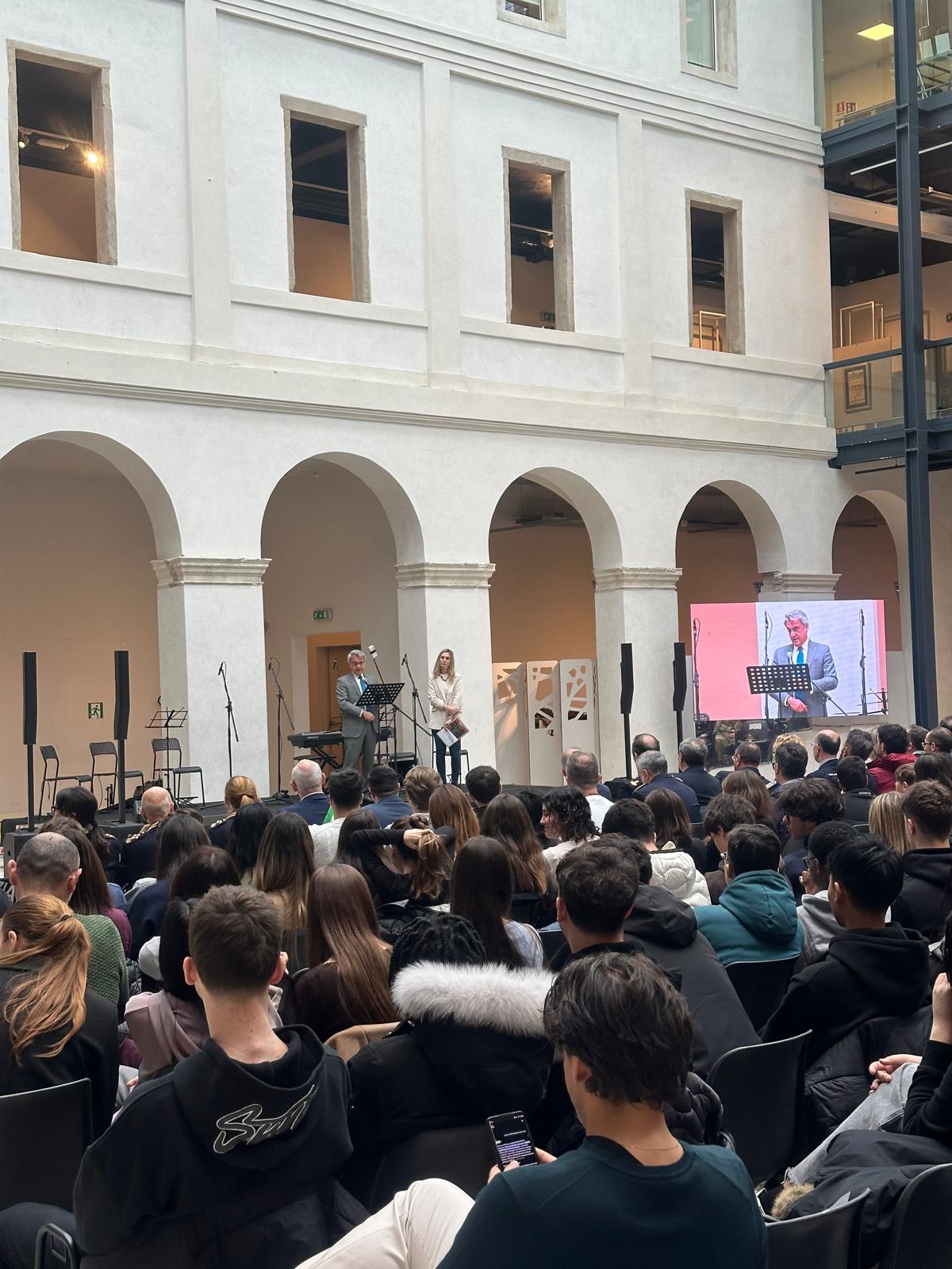 Il Primo Dirigente della Polizia di Stato Giuseppe Maria Iorio, ha poi trattato il delicato tema della violenza di genere, sottolineando l'importanza della prevenzione e dell'educazione al rispetto delle donne. In seguito, gli studenti del Liceo Eugenio Curiel hanno presentato un brano dal sito "Cuori Connessi", sensibilizzando sul tema della comunicazione sana nelle relazioni interpersonali.