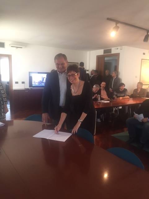 Questa mattina, presso la sede del Consorzio Acque Risorgive, l'amministrazione comunale di Noale, rappresentata dal Sindaco Patrizia Andreotti e dall'Assessore all'ambiente Alessandra Dini, ha partecipato alla firma del contratto di fiume Marzenego. La firma è avvenuta in occasione della conferenza stampa organizzata appositamente, alla presenza di Francesco Cazzaro e Carlo Bendoricchio, rispettivamente Presidente e Direttore del Consorzio di Bonifica Acque Risorgive, dei Sindaci dei Comuni aderenti di Camposampiero, Loreggia, Martellago, Massanzago, Noale, Piombino Dese, Resana, Salzano, Scorzè, Spinea, Trebaseleghe e Venezia, e dei rappresentanti di istituzioni e associazioni coinvolte nel processo partecipato. L’accordo, avviato nell’anno 2013, che ha messo assieme conoscenze tecniche, competenze ed interessi di soggetti pubblici e privati, fissa 4 obiettivi generali: migliorare la funzionalità ecologica e paesaggistica, gestire il rischio idraulico in modo integrato, valorizzare i luoghi sotto il profilo socio-economico e tutelare la qualità della vita delle comunità locali che insistono sul bacino fluviale. Allegato all’accordo di programmazione, che avrà durata quinquennale dalla data di sottoscrizione, il programma fissa 22 misure e 64 azioni da sviluppare attraverso studi e indagini, strumenti organizzativi, buone pratiche, progetti pilota e attività di comunicazione e formazione. Con la firma dell’accordo di programmazione negoziata tra i soggetti, pubblici e privati, che hanno partecipato al percorso partecipato, il Contratto di fiume Marzenego diventa uno strumento operativo per puntare, secondo un programma di azioni condivise, alla riqualificazione ambientale, sociale ed economica del corso d’acqua che con i suoi 45 chilometri tocca il territorio di tre province.