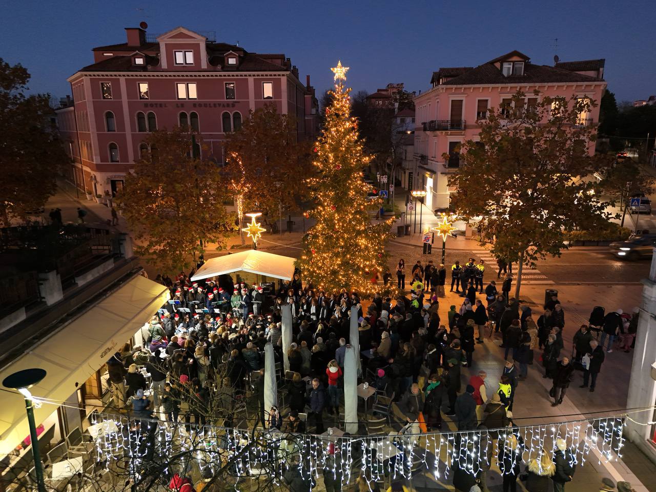 La cerimonia di accensione del grande albero di Natale di Piazza Ferretto ha idealmente inaugurato la stagione delle feste, insieme all’apertura della pista di pattinaggio su ghiaccio e dei tradizionali mercatini natalizi con le casette in legno che propongono artigianato, sapori e tradizioni.