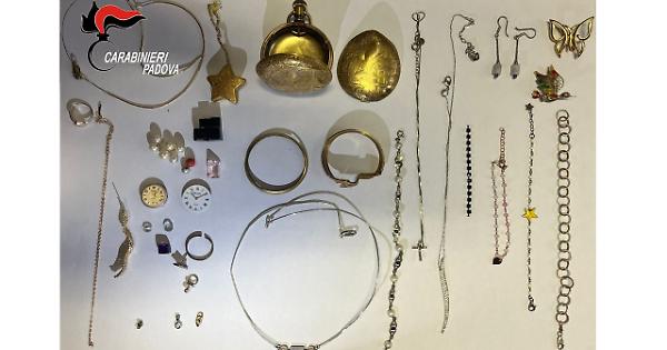 di un’abitazione in via Aldo Moro a Vigonza ha inviato subito la pattuglia che vedeva correre a piedi solo uno dei due soggetti segnalati, travisato, ma prontamente raggiunto e bloccato. Perquisito, è stato trovato in possesso di arnesi da scasso usati per forzare la finestra di casa e di diversi gioielli in oro appena rubati. La refurtiva è stata parzialmente restituita al legittimo proprietario e l’arrestato, conosciuto alle Forze dell'Ordine per reati simili, come disposto dal PM di turno è stato accompagnato nel carcere di Padova a disposizione dell’Autorità Giudiziaria. La restante refurtiva si trova nella Stazione Carabinieri di Noventa Padovana in attesa del riconoscimento da parte dei proprietari.