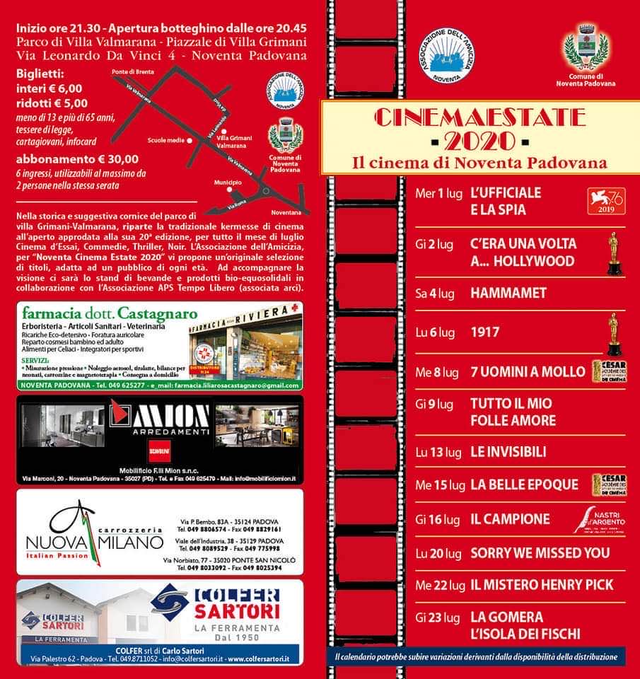 Una ricca prgrammazione di film per l'estate a Noventa Padovana