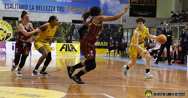 1° QUARTO. È firmato Milazzo il primo vantaggio dell’incontro, ma è pronta la risposta delle ospiti, brave a salire sul 2-7 con la tripla di Ndour. È un’Umana ispirata, che con 6 punti consecutivi di Bestagno (2+1 e tripla dall’angolo) vola sul 4-13 al 5′. Kelley prova allora a scuotere le giallonere, con 7 punti in fila che restituiscono il -4 (11-15). Intanto coach Serventi allunga le rotazioni mandando in campo anche le più giovani: al 9′ è Peserico a dare il via all’azione chiusa dalla tripla di Guarise, per il -1 Lupe sul 18-19. 2° QUARTO. In avvio di seconda frazione Mitchell in uscita dai blocchi firma il pareggio a quota 20. Dall’altra parte la lunghissima Ndour approfitta anche del riposo concesso a Kelley per fare la voce grossa sotto le plance, ma San Martino è sempre lì, trovando canestri preziosi con Filippi e Milazzo per rimanere a contatto. Al 16′ il tabellone dice ancora 29-30, fra gli applausi di un PalaLupe orgoglioso, e poco dopo la seconda tripla di Kelley vale il nuovo pareggio a quota 32. Anderson tuttavia risponde subito con un gioco da tre punti, e nonostante i primi punti stagionali in A1 di Arado, all’intervallo lungo la Reyer è ancora avanti di un’incollatura grazie alla tripla di Attura: 38-40. 3° QUARTO. È con 4 punti consecutivi di Kelley che il Fila va ancora a impattare sul 42 pari, ma dall’altra parte Carangelo trova una bomba e subito dopo un 2+1 che fanno male, e in un attimo fanno volare le ospiti sul +9 (44-53). Le Lupe però non ci stanno, e ancora con Filippi e Kelley provano a rifarsi sotto, ritrovando il -2 sul 51-53 (27′). Nonostante le risposte di Thornton e Madera, sono le bombe siglate da Pastrello e Milazzo a consentire di trovare ancora la parità sul 57-57, prima del 2+1 di Anderson che a fil di sirena manda le ospiti all’ultima pausa sul +3. 4° QUARTO. Eppure la quarta frazione si apre coi canestri della stessa Kelley (top scorer dell’incontro con 24 punti), e di Mitchell, per il sorpasso Fila. È il primo vantaggio delle giallonere dal 2-0 iniziale, ma dura un attimo, perché dall’altra parte risponde subito Madera da tre. A decidere la sfida saranno i dettagli: come quando al 35′ non va la tripla del sorpasso di Mitchell, e sul ribaltamento Carangelo punisce proprio da fuori per il 61-66. San Martino prova a crederci fino alla fine, a 2′ dalla sirena Pastrello trova la stessa Mitchell per il nuovo -4 (64-68). Ma Venezia è brava a non farsi sorprendere, e a tenere sempre quel minimo margine che le permette di condurre in porto la vittoria. LA CLASSIFICA (fra parentesi le gare giocate): Schio 32 (16); Venezia 26 (15); Bologna 24 (15), Lucca 24 (17); Ragusa 22 (15); San Martino 18 (16); Campobasso 16 (16), Geas 14 (16); Sassari 12 (14), Costa Masnaga 12 (16); Moncalieri 6 (15), Faenza 6 (16), Broni 6 (16); Empoli 2 (17).