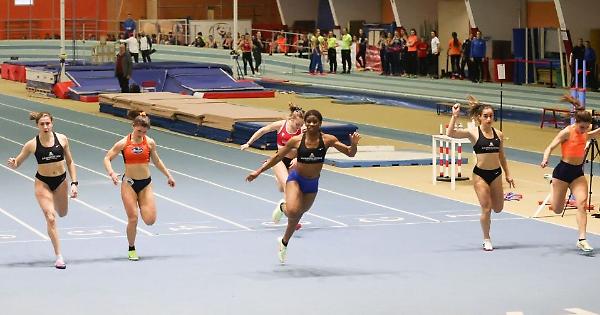 Ancora uno sprint vincente per Hope Esekheigbe. Dopo la vittoria all’esordio, la velocista di Assindustria Sport si ripete al Palaindoor di Padova, imponendosi nei 60 metri in 7”43 e togliendo 3 centesimi al tempo realizzato sullo stesso rettilineo otto giorni prima. Per la ventunenne padovana è un bel biglietto da visita in vista dei Campionati del Mediterraneo under 23 di Valencia di domenica 22 gennaio, per i quali è stata convocata dal vice direttore tecnico per le squadre giovanili nazionali Antonio Andreozzi, che ha selezionato 15 atleti. Se la copertina spetta di diritto a lei, va detto che sono stati diversi i compagni di squadra capaci di mettersi in mostra nell’impianto accanto allo Stadio Euganeo, in un doppio appuntamento capace di richiamare oltre 1.200 iscritti. Altre due le vittorie gialloblù, ottenute da due rinforzi del 2023: si tratta di Thomas Serafini, che si impone in volata nei 3.000 fermando il cronometro dopo 8’27”86, e del francese François Caffier, a Padova per motivi di studio, che fa suo il triplo con 14.34 metri, davanti a Matteo Cimarelli, terzo con 14.21. Alcune prove della manifestazione assegnavano anche le maglie di campione regionale, tra cui il triplo femminile: a conquistare il titolo veneto è stata Francesca Ventura, che ha lasciato il suo segno a 12.43. Sul podio anche Tiziano Feletto, secondo nell’alto con 2.03, e Nurah Mandy Fadika, terza nella stessa specialità femminile con 1.69, risultato di particolare rilievo considerando che appartiene ancora alla categoria allieve. Terza piazza anche per la capitana della squadra, Carol Zangobbo, che fa il suo esordio stagionale nel lungo lasciando la sua impronta a 5.94. Sempre a livello assoluto, da segnalare il successo di Fabrizio Ceglie nei 60 al meeting di apertura friulana a Udine, in 6”93, ma dopo aver corso in 6”88 in batteria, e, nella stessa manifestazione, quello di Lorenzo Schiavon, issatosi a quota 4.40 nell’asta. Nel weekend si è gareggiato anche “a casa”, con circa 300 atleti della categoria cadetti impegnati sul rettilineo al coperto del Colbachini, sotto l’organizzazione della Fidal Padova. Per la squadra gialloblù, da segnalare l’affermazione di Tommaso Agostinis nei 60hs in 9”1 e la terza piazza di Giorgia Rampazzo, in 10”4 nella stessa gara femminile.