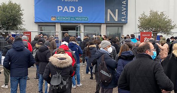 Padova, ancora lunghe code di fronte ai punti tampone e ai centri vaccinali