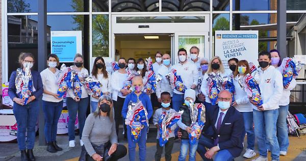 Una Pasqua all’insegna della solidarietà. Vincenzo Gottardo, vicepresidente della Provincia di Padova, ha consegnato questa mattina le cento uova di cioccolato donate da Despar al reparto di Oncoematologia pediatrica dell’Ospedale di Padova portando gli auguri ai piccoli pazienti e alle loro famiglie con le voci del Moviechorus. “La Provincia di Padova – ha spiegato Vincenzo Gottardo – è da sempre vicina, anche con piccoli gesti, per sostenere progetti in ambito medico, assistenziale e di ricerca. La donazione di oggi vuole essere una testimonianza di solidarietà e generosità, ma vuole portare soprattutto un po’ di serenità e un sorriso ai bambini che trascorreranno la Pasqua in reparto. Non c’è maggior soddisfazione che far felici i bambini, soprattutto quelli che soffrono. Anche il Moviechorus, da sempre sensibile a queste iniziative, ha voluto unirsi a questo augurio con qualche brano musicale per allietare il momento pasquale. Ringrazio Aspiag per questa opportunità che è la testimonianza di quanto sia radicato l’impegno sociale e la partecipazione attiva nella nostra regione”. Alla consegna erano presenti Vincenzo Gottardo, vicepresidente della Provincia di Padova, Chiara Girello Azzena, presidente di Team for Children, Alessandra Biffi, direttore Clinica Oncoematologica pediatrica di Padova, Erika De Lorenzi, direttrice artistica Moviechorus, Francesca Guglielmi, ufficio stampa Aspiag Service. In questi ultimi due anni nel reparto di Oncoematologia l’attività è stata particolarmente intensa per la gestione delle cure ordinarie coniugate alla pandemia, ma nel contempo per cercare di assicurare la massima attenzione anche ai genitori, il cui soggiorno per assistere i piccoli, diventa sempre più complicato a causa dell’emergenza. “Anche quest’anno – ha dichiarato Chiara Girello Azzena – abbiamo pensato a chi trascorrerà la Santa Pasqua in Ospedale e, con la collaborazione di chi non dimentica mai i bambini, abbiamo deciso di portare un uovo di cioccolato come simbolo della festività”. “E’ sempre gradita la testimonianza e la vicinanza – ha detto Alessandra Biffi – da parte di persone che possano regalare un momento di allegria e serenità come quello di oggi. Siamo molto grati alla Provincia di Padova che non fa mai mancare la sua partecipazione e il suo sostegno”.“Donare le uova di Pasqua ai bambini del reparto di Oncoematologia pediatria dell’Ospedale di Padova è per noi di Despar motivo di grande orgoglio – ha dichiarato Francesca Guglielmi, ufficio stampa Aspiag Service, prima di tutto perché speriamo così di contribuire a portare un po’ di colore e di allegria fra i piccoli pazienti del reparto; poi perché, soprattutto in questo momento, vogliamo essere ancora più vicini ai territori in cui siamo presenti. Iniziative come questa ci permettono di dare un aiuto concreto attraverso i nostri mezzi e con le nostre possibilità. La vicinanza al territorio è un valore a cui crediamo moltissimo e che scegliamo di rendere concreto nelle nostre attività sociali. Anche oggi, insieme alla Provincia di Padova e al reparto di Oncoematologia dell’Ospedale di Padova, possiamo rendere questo valore una realtà”.