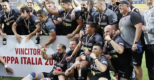 Allo stadio Lanfranchi di Parma, il Petrarca Padova torna a vincere la coppa Italia che mancava nella bacheca petrarchina dal 2001 (27-11 sul Gran Parma in finale), poi finali perse nel 2008 (10-32 con Overmach Parma), nel 2010 (8-9 col Benetton) e nel 2020 (3-10 con Rovigo). È stata una partita che il XV della Polizia di Stato, ha comandato per più di un’ora, mettendo in grosse difficoltà la squadra che finora ha dominato la regular season del “Peroni TOP10”. Alla fine, la maggior esperienza e i cambi del Petrarca hanno fatto la differenza. Dopo meno di un minuto è il Petrarca ad avere la prima occasione con un calcio di punizione all’altezza dei 10 metri che Lyle infila: 0-3. Dopo circa venti minuti di studio tra le due squadre, le Fiamme si riversano nella metà campo avversaria e, dopo una lunga pressione, Massimiliano Chiappini intercetta un pallone e va a schiacciare per il momentaneo vantaggio cremisi: 5-3. Al 15’ le Fiamme vanno di nuovo a segno, ma l’arbitro Munarini annulla la meta di Alessio Guardiano dopo aver consultato il TMO; le Fiamme hanno comunque l’occasione di incrementare il punteggio con Andrea Menniti-Ippolito che infila i pali e porta lo score sul 8-3. Passa meno di un minuto e il Petrarca accorcia le distanze, grazie al piede di Lyle che riporta i suoi a -2. Il primo tempo si chiude con i Cremisi avanti 8 a 6. La ripresa si apre con le Fiamme che hanno l’occasione di aggiungere punti, ma Andrea Menniti-Ippolito non centra i pali e lo score resta invariato. È battaglia sul campo, con continui capovolgimenti di fronte, ma al 55’ dopo una lunga serie di pick and go sui 5 metri dei veneti, le Fiamme conquistano un calcio di punizione con Andrea Menniti-Ippolito che fa 11 a 6. Al 65’ il Petrarca si fa sotto e preme le Fiamme nei propri 5 metri con la maul, finché non va in meta con Nostran; Lyle trasforma e porta i suoi avanti 11-13. Le Fiamme cercano la reazione, ma i Tuttineri ingranano le marce alte, anche grazie alle forze fresche della panchina, e negli ultimi 10 minuti mettono a segno due mete, al 70’ con Carnio e al 74’ con Schiabel chiudendo definitivamente il match, nonostante i ragazzi di Presutti onorino la finale lottando fino all’ultimo secondo disponibile. Il Petrarca si aggiudica la Coppa Italia vincendo 23 a 11. Il tabellino Fiamme Oro: Biondelli; Spinelli (61’ Marinaro), Forcucci (58’ Fusari, 61’ Forcucci)), Gabbianelli, Guardiano; Menniti-Ippolito (56’ Di Marco), Marinaro (cap.) (53’ Fusco); Vian, Chianucci (41’ De Marchi), D’Onofrio U.; Chiappini (50’ Fragnito), Stoian; Nocera (50’ Romano), Moriconi (50’ Fragnito), Zago (70’ Iovenitti). A disposizione: Iovenitti, Kudin, Romano, Fragnito, De Marchi, Piva, Di Marco, Fusco. All. Presutti Petrarca Padova: Lyle; Fou, Sgarbi, Broggin, Esposito (47’ Schiabel); Faiva, Tebaldi (58’ Citton); Trotta (cap.), Nostran, Casolari (58’ Panozzo); Ghigo (63’ Michieletto), Galetto; Hasa (63’ Pavesi), Cugini (58’ Carnio), Spagnolo (70’ Franceschetto). A disposizione: Franceschetto, Carnio, Pavesi, Panozzo, Michieletto, Citton, De Masi, Schiabel. All. MarcatoGIVE EMOTIONS SRL | C.F. e P.IVA 04385760287 REA PD-385156 | Reg. Tribunale di Padova n. 2516