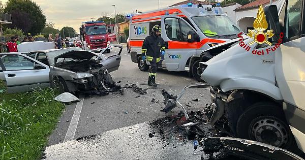 Scontro tra auto e furgone: feriti entrambi i conducenti, nell'abitacolo rimane incastrato un uomo anziano