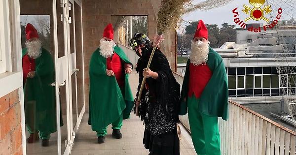 Un’epifania speciale per i bambini ricoverati presso il dipartimento di pediatria dell’università di Padova, che hanno ricevuto i dolciumi della festa da una speciale Befana. Due elfi vigili del fuoco si sono prodigati per l’arrivo della Befana, che si è calata dal cielo portando in dono ai bambini le calze piene di dolciumi e un regalino dei pompieri. Ad assistere all’arrivo della befana anche il direttore generale dell’azienda ospedale Università di Padova Dott. Giuseppe Dal Ben. Il personale dell’associazione gioco e benessere e il comandante dei vigili del fuoco ing. Giuseppe Lomoro che ha coadiuvato le manovre tecniche dell’arrivo della befana insieme ad altri 6 vigili del fuoco.