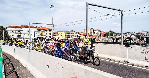 Un fiume di biciclette ha attraversato le vie cittadine attraverso quattro percorsi che hanno lambito diverse scuole del territorio, raccogliendo in ognuna di esse centinaia di bambini e genitori per confluire poi tutti insieme nel cortile di Palazzo Moroni, che è stato letteralmente invaso dalle biciclette dei partecipanti. Le attività sono proseguite in Piazza delle Erbe con stand, giochi e spettacoli organizzati per la Festa della bicicletta.