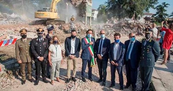 Le autorità nel luogo della demolizione, dove sorgerà la nuova Questura