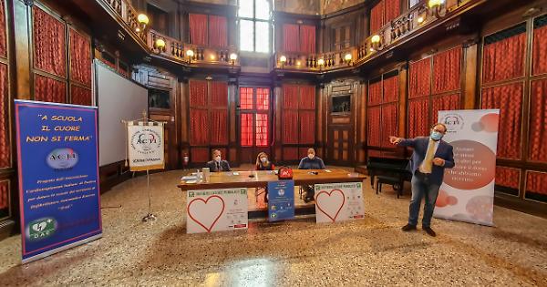 Si è tenuta quesa mattina la donazione da parte dell'Associazione A.C.T.I di due defibrillatori a degli Istituti scolastici. Rispettivamente ricevono questo strumento il Liceo Duca D'Aosta di Padova e l'Istituto comprensivo di Selvazzano Dentro. Ha aperto la conferenza il consigliere comunaleStefania Moschetti. "Pochi mesi fa Anna, una studentessa, è mancata in un istituto scolastico. Dobbiamo evitare che queste tragedie si possano riproporre. La strada da perseguire è quella della prevenzione. Scienza e competenza unite verso la tutela e la sicurezza della salute. è quindi necessario investire sui corsi di primo soccorso, anche attraverso l'ausilio di specializzandi che rappresentano una grande risorsa." Fino ad oggi la presenza dei defibrillatori "DAE" nelle scuole non è obbligatoria, conferma il Preside dell'istituto Duca D'Aosta. Fondamentale è stato il contributo di Gino Gerosa, direttore UOC cardiochirurgia dell'Azienda Ospedaliera di Padova, il quale spiega quanto sia rilevante capire che non siamo persone isolate ad un contesto sociale. “Il comportamento di ognuno di noi diventa importante per garantire la salute altrui. Quest'interconnessione la viviamo in questi mesi di pandemia. Piccoli gesti delle volte possono fare la differenza. La politica riguardo la prevenzione, ha la possibilità di modificare i casi clinici, basti pensare alla legge sul obbligo di utilizzo del casco. Serve che il DEA si fisicamente inserito all'interno degli istituti così come è necessario che ci sia qualcuno che garantisca le funzioni vitali durante l'uso del device.“ “Fondamentale in ogni contesto della vita e in ogni posto in cui si possa trovare“. Così definisce Paolo Visentin, presidente Associazione ACTI PD, il saper utilizzare il defibrillatore. “Come associazione Cardiopiantati ci sentiamo proattivi nel restituire ciò che abbiamo ricevuto, lo facciamo attraverso incontri nelle scuole. Inoltre molti di noi hanno competenze tecniche e possono rendersi disponibili al fianco degli specializzandi. I defibrillatori sono strumenti semplici nell'utilizzo, considerando che ci aiutano nel diagnosticare se effettivamente c'è la necessità di applicazione del device.“