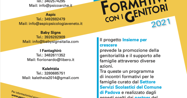 In allegato l’elenco degli incontri. Info su www.padovanet.it – incontri formativi con genitori.
