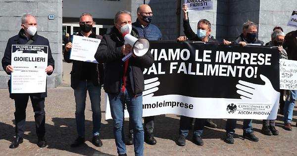 Questa mattina, di fronte al tribunale di Padova, il flashmob organizzato dall'Ascom-Confcommercio. In rappresentanza anche del mondo della ristorazione presente l'associazione provinciale dei pubblici esercizi (Appe). La manifestazione, denominata "Salviamo le imprese dal fallimento", non a caso sceglie come location il tribunale; «La scelta del luogo simbolo della giustizia - afferma il presidente di Ascom Patrizio Bertin - deve valere come monito, o attraverso i vaccini si avvia un programma di riapertura graduale con date certe o la prospettiva è quella di dover portare i libri in tribunale»