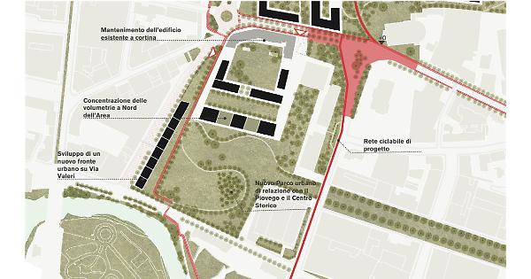 4-raggiungimento di un equilibrio tra i volumi edificabili e le attività da insediare, con un mix funzionale tra tipologie residenziali di vario genere, dagli studentati agli appartamenti, agli alloggi per i turisti, servizi al cittadino, servizi culturali e spazi commerciali