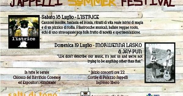 Dopo il successo della scorsa edizione, torna lo Jappelli Summer Festival, a Piove di Sacco. Nato nel 2014 dall’esigenza di ridare vita alla corte sul retro della sede comunale di Palazzo Jappelli, per molto tempo non considerata nel calendario degli eventi che animano l’isola pedonale, il festival torna, quest’anno, con due serate dedicate alla musica, sabato 18 e domenica 19 luglio. “Il desiderio era quello di creare un momento aggregativo di grande qualità musicale, che potesse valorizzare la piazza ed essere allo stesso tempo punto di riferimento per la musica a Piove di Sacco” ha fatto sapere l’assessore alla cultura, Paola Ranzato, che ha seguito l’organizzazione dell’evento. Il desiderio dell’assessore ha trovato una risposta nella collaborazione con l’associazione Salti di Tono, che ha fin da subito curato la direzione artistica del Festival, inaugurando la prima edizione, nel luglio del 2014. “L’esordio ha riscosso un grande successo di pubblico e di critica, tanto che ci è parso doveroso e quasi scontato riproporre il Festival anche quest’anno” ha detto Ranzato, evidenziando, però, anche qualche differenza rispetto al 2014. Questa edizione, infatti, è stata “abbellita” con la presenza di alcuni espositori di creazioni “hand-made” di alto profilo, ovvero, Filotimo, con abbigliamento in tessuti naturali, Alce Rossa, litografie e stampe a mano, Crazypaper, con borse, oggetti con carta riciclata e musicassette, Tam Tam, oggetti per la casa equo-solidali, Insunsit, incisioni, stampe e tessuti, Joli, gioielli fatti a mano con seta e perle, Chabu, gioielli in ceramica e porcellana, e, immancabile, il Birrificio Conense, con le sue birre artigianali. Entrambi i concerti, organizzati anche con la collaborazione della Banca di Credito Cooperativo di Piove di Sacco, inizieranno alle ore 22 e saranno ad ingresso gratuito. Durante la prima serata si esibirà sul palco il gruppo veneto Istrice, che proporrà musica dal sound folk blues, con un richiamo allo stile di Rino Gaetano. Protagonista della seconda serata sarà, invece, il duo americano Morwenna Lasko & Jay Pun. Prodotti dalla Dave Matthews Band, il duo è composto da chitarra acustica, violino e voce e proporranno brani dal sound country, blues e funky. L’appuntamento è dunque fissato per il week end del 18 e 19 luglio, nel cortile sul retro del palazzo comunale.GIVE EMOTIONS SRL | C.F. e P.IVA 04385760287 REA PD-385156 | Reg. Tribunale di Padova n. 2516