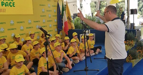 Si sono preparati a lungo e con impegno per questo evento speciale e per loro è stata una grande emozione raggiungere Roma per cantare l’Inno di Mameli di fronte ad una platea di ministri e autorità. E’ toccato ai ragazzi delle classi quarta e quinta A della scuola primaria “Leonardo Da Vinci” di Gazzo, in provincia di Padova, aprire la seconda edizione della “Festa dell’educazione alimentare e della pace” organizzata da Coldiretti a Roma. Gli alunni sono saliti sul palco di fronte alle autorità e, accompagnati dal maestro Stefano Chiodo, hanno cantato senza esitazione l’Inno d’Italia. Un’esecuzione perfetta ed emozionante, salutata da un lungo applauso da parte del pubblico. In prima fila, accanto al presidente di Coldiretti Ettore Prandini e alla responsabile nazionale delle donne di Coldiretti, la veneta Chiara Bortolas, esponenti del governo: Luigi Di Maio, ministro degli Esteri; Stefano Patuanelli, ministro delle politiche agricole alimentari e forestali; Nicola Zingaretti, presidente Regione Lazio; Roberto Gualtieri, sindaco di Roma; Maurizio Martina, vice direttore generale Fao oltre a Lucio Rinaldi, professore di psichiatria all’Università Cattolica del Sacro Cuore di Roma e Alberto Villani direttore del dipartimento di emergenza, accettazione e pediatria generale dell'ospedale Bambino Gesù.