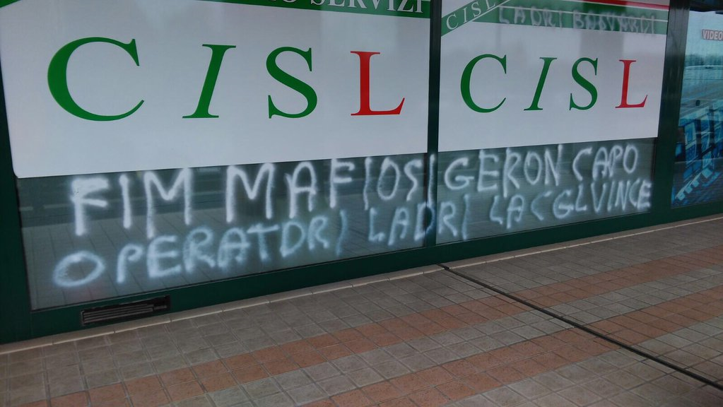 Grave atto vandalico nella notte tra mercoledì e giovedì nei confronti della sede di Camposampiero della Cisl di Padova Rovigo, dove ignoti hanno scritto frasi infamanti e ingiuriose sulle vetrate degli uffici in via Bellini. L’ignobile episodio è stato subito segnalato agli investigatori della Digos per le indagini e azioni del caso. “Questo attacco diretto alla nostra sede di Camposampiero, e in particolare alla categoria dei metalmeccanici e al suo Segretario Generale – dichiara Sabrina Dorio, Segretario generale della Cisl di Padova Rovigo - non limiterà in alcun modo la libertà di pensiero tipica della nostra organizzazione e le azioni sindacali, per cui tutti stiano certi che continueremo a svolgere il nostro lavoro di rappresentanza sindacale nel territorio, a partire sempre dai più deboli, ancora più determinati di prima”. “Respingiamo con forza questo attacco alla nostra categoria e tutte le vili accuse scritte da chi manifesta in modo anonimo e compie azioni nascondendosi – aggiunge il Segretario generale della Fim Maurizio Geron -. Sono atti che vanno contro al vivere civile e democratico e non servono certo a fermarci. Tali atti non ci intimidiscono, anzi ci inducono a rafforzare la nostra attività di tutela dei lavoratori in tutti i luoghi di lavoro”.GIVE EMOTIONS SRL | C.F. e P.IVA 04385760287 REA PD-385156 | Reg. Tribunale di Padova n. 2516