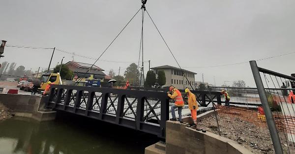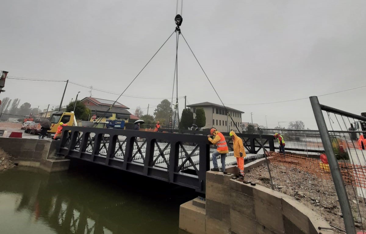 Proseguono secondo cronoprogramma i lavori per l’intervento di rifacimento del ponte sul canale Altipiano a Santa Margherita. Qualche settimana fa è stato varato il nuovo impalcato che è stato sistemato in sede. La posa dell'impalcato è uno dei passaggi più importanti esignificativi per il completamento dell'intervento. La realizzazione della struttura in acciaio è avvenuta in un’officina ma le dimensioni erano tali da non permetterne il trasporto direttamente nel cantiere. Per questo i singoli pezzi sono stati assemblati e saldati direttamente in loco. Il ponte congiunge via Altipiano a via Adige evia Idrovora e dista poche decine di metri dalla Sr 105 Cavarzerana. E’ la porta d’ingresso all’impianto idrovoro della frazione che è, traquelli tuttora funzionanti, uno di quelli di maggiore valore storico eartistico. Un’idrovora realizzata alla fine dell’800 e ristrutturatarecentemente con diversi interventi con i quali è stato anche realizzato un museo a percorso tra più completi,dal punto di vistastorico testimoniale, sulla bonifica del territorio compreso tra leprovince di Padova e Venezia. I lavori al ponte erano iniziati aluglio con la rimozione del ponte esistente che è stato sollevato eposto sulla sponda per procedere poi con la demolizione. Sono poistate poste delle palancole provvisorie per la messa in asciuttadell'area interna dove sono stati posati 16 pali di fondazione in calcestruzzo armato che sono andati a formare la struttura provvisoria per permettere le operazioni di ricostruzione. In un secondo momento èstata posizionate una struttura di travi in acciaio. “Si attendeva datempo questo intervento che non era più rinviabile - ricorda Paolo Ferraresso, presidente del Consorzio di bonifica Bacchiglione – vistele condizioni precarie nelle quali si trovava il vecchio manufatto. Stiamo parlando dell’accesso principale per l’idrovora storica diSanta Margherita e per altre aziende localizzate nelle vicinanze. Nonpossiamo che essere soddisfatti di questo risultato prima di tutto perla sicurezza dei dipendenti dell’idrovora che il ponte lo attraversano quotidianamente e naturalmente di tutti i visitatori del sito museale. Il beneficio è comunque allargato ad un intero territorio che è vivo eche racconta la storia della bonifica. Grazie al finanziamento della Regione è possibile avere a disposizione una nuova struttura più funzionale e sicura”.