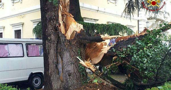 Tragedia sfiorata alle 13.30 di ieri a Piazzola sul Brenta, dove il maltempo si è scatenato con violenza sul mercatino dell'antiquariato che di consueto si svolge nella piazza cittadina. Una violenta folata di vento, già accompagnata da una pioggia violenta e battente, ha spezzato in due il ramo di un grosso pino, che è andato ad abbattersi su una bancarella del mercatino travolgendo una persona, ferita gravemente.