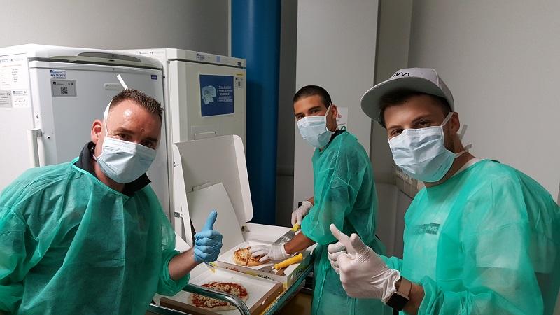 Visita speciale ieri pomeriggio per i bambini ricoverati nella Clinica di Oncoematologia Pediatrica a Padova. Il veneziano Maurizio Toffoli, campione italiano di pizza, e il vicentino Lorenzo Cogo, lo chef stellato più giovane d’Italia, hanno preparato la pizza assieme ai piccoli pazienti, dalla stesura dell’impasto sino alle decorazioni finali post cottura con tanto di ingredienti “magici”. Spremendo barattoli colorati di “sorriso”, “energia”, “velocità” o “coraggio”, per esempio, scendevano rispettivamente una salsa di carote, curcuma, marmellata di pomodoro e cioccolato. Due, infatti, le versioni di pizza realizzate: salata e dolce. La singolare esperienza ha incontrato l’entusiasmo di bambini, genitori e volontari presenti