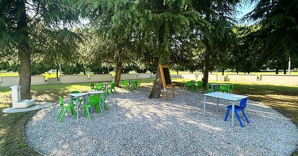 “Lavorando insieme all’ufficio tecnico del Comune i ragazzi, le ragazze con i loro insegnanti hanno individuato i migliori arredi – commenta l’assessore alla Pubblica Istruzione Chiara Andretta -. Tavoli, sedie, cattedra e lavagna sono colorati, componibili e pensati per lavorare in gruppo. Sono tutti adatti a rimanere all’esterno e fatti di materiale riciclato, come richiesto dai ragazzi. Abbiamo installato anche una fontanella, che servirà per le lezioni di arte e per altri progetti, e posato del ghiaino per evitare problemi in caso di pioggia. In questo percorso i membri del CCrr si sono sempre confrontati con gli alunni dell’istituto, che si sono anche impegnati a mantenere integro e in buono stato gli arredi e l’area”.