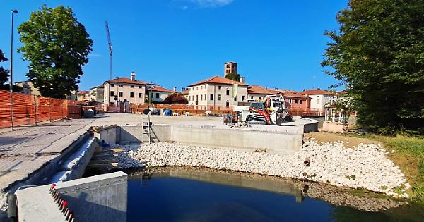 Procede spedito il cantiere della rotatoria e dei lavori di miglioramento e messa in sicurezza di Via S. Antonio. L’impresa sta lavorando in maniera eccellente. Sono stati eseguiti lavori strutturali impegnativi in corrispondenza del fiume Muson, cioè fondazioni e muri di sostegno della rotatoria. In questi giorni è in fase di montaggio l’impalcato del ponte in acciaio, si procederà nei prossimi giorni con la posa in opera. Nel frattempo sono stati in parte realizzati anche i lavori verso ovest, zona ingresso Santuari. Si vede il nuovo marciapiede che già molti hanno cominciato ad utilizzare. Ci sarà una pausa intorno a ferragosto. Soldi per ultimazione lavori 1.04.2026 di euro, importo totale 1.220.000, euro.