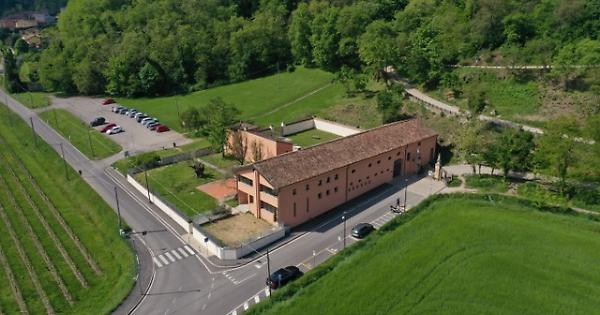 L’edificio che lo ospita era un annesso di Villa Draghi, lussuosa residenza posta in posizione dominante sull’abitato di Montegrotto Terme, costruita verso la fine del XVI secolo e variamente rimaneggiata nei secoli successivi.